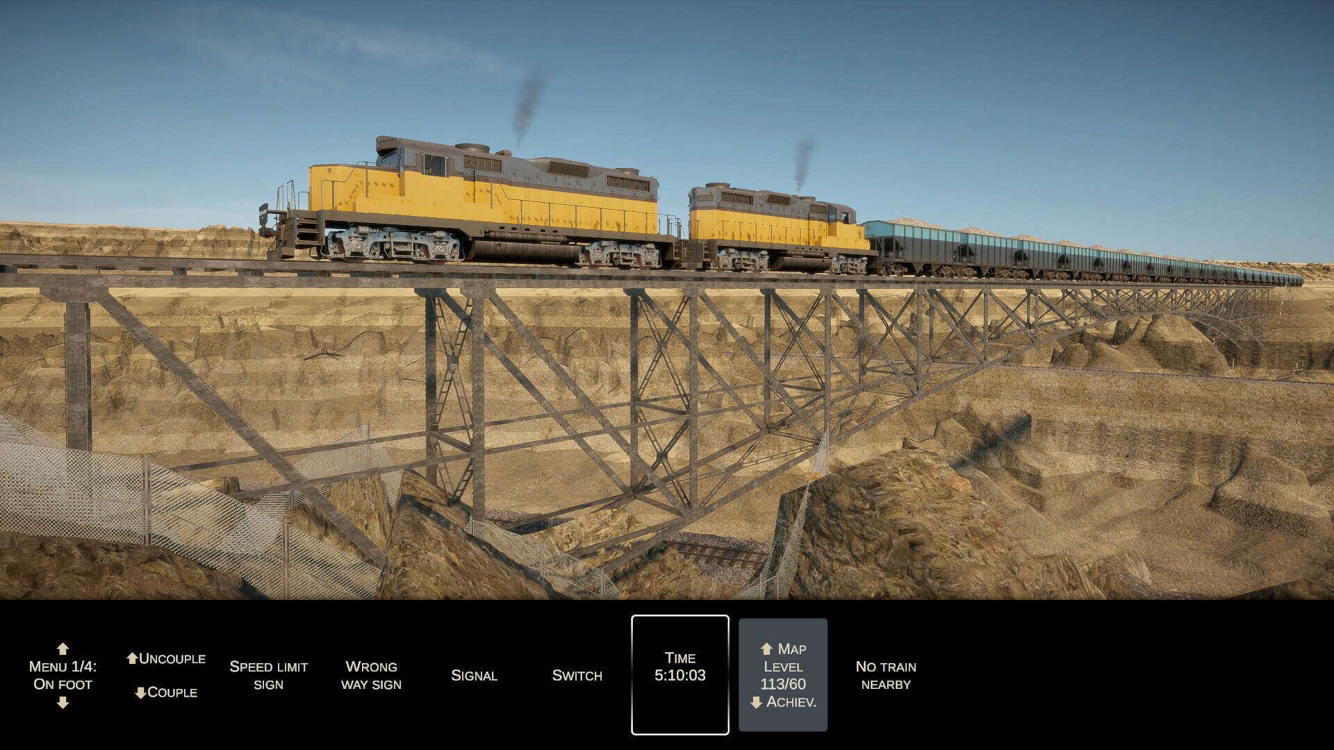 Flexible trackTrack building in Constracktion is not based on predefined pieces. You're free to steer the track laying train in any direction to create arbitrary junctions and crossings.Deformable terrainDig your way through sand and rock, using the stored dirt to build embankments over holes. Smart management of dirt balance is key to reaching locations higher up and building an efficient track network with manageable grades.Six mapsFrom pine mountains to mesas and canyons, six increasingly larger and complex maps challenge your planning and terrain reading skills.48 AchievementsEight achievements per map, many of which cannot be unlocked at the same time, encourage replaying each map in a different style to overcome unique challenges and constraints.Three locomotivesUpgrade the speed and efficiency of your construction train by purchasing additional vehicles like dirt cars, track cars, track laying units and locomotives of various speeds.AI-trainsYou're not alone! As you connect industries, AI-trains start running on the tracks, revealing weaknesses in your network: Sharp curves may cause derailments unless marked with speed limit signs. Steep grades may cause heavy trains to get stuck, requiring assistance.Traffic optimizationInstall signals for higher running speeds. Push stalled trains and operate switches manually to save precious seconds. Take control of trains and drive yourself when the AI can't meet its deadline. Fast flow of traffic is the ultimate goal!