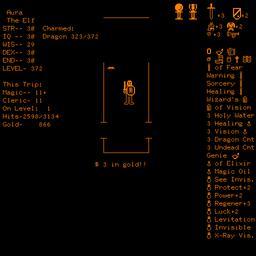 dnd (also known as The Game of Dungeons) was one of the first dungeon crawling RPGs for PLATO system, loosely based on tabletop RPG Dungeons & Dragons.