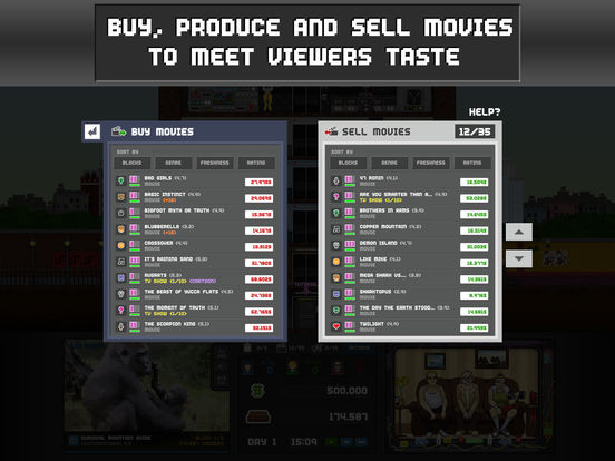 Make your own productions, movies or tv-shows. Distribute your resources effectively for each available movie genre.