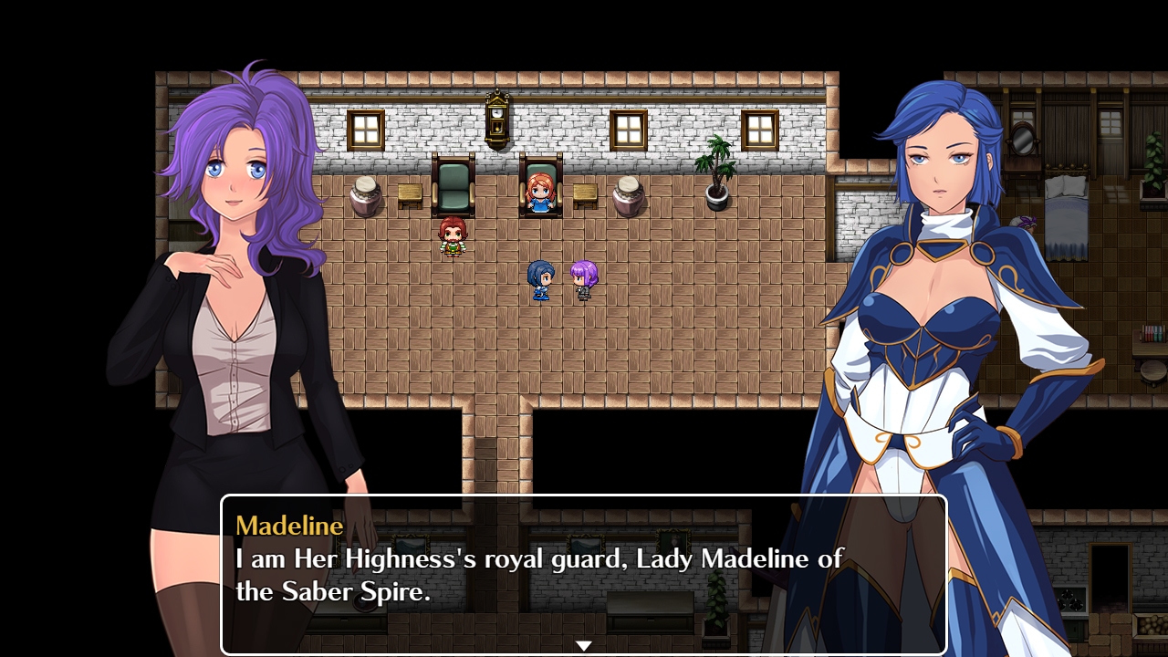 Futanari Quest is an ecchi RPG with yuri themes. You take the role of Yui, a young woman who is blessed/cursed with a surprise gender-change! You're given the challenging task of ensuring your genetics are passed down to future generations.