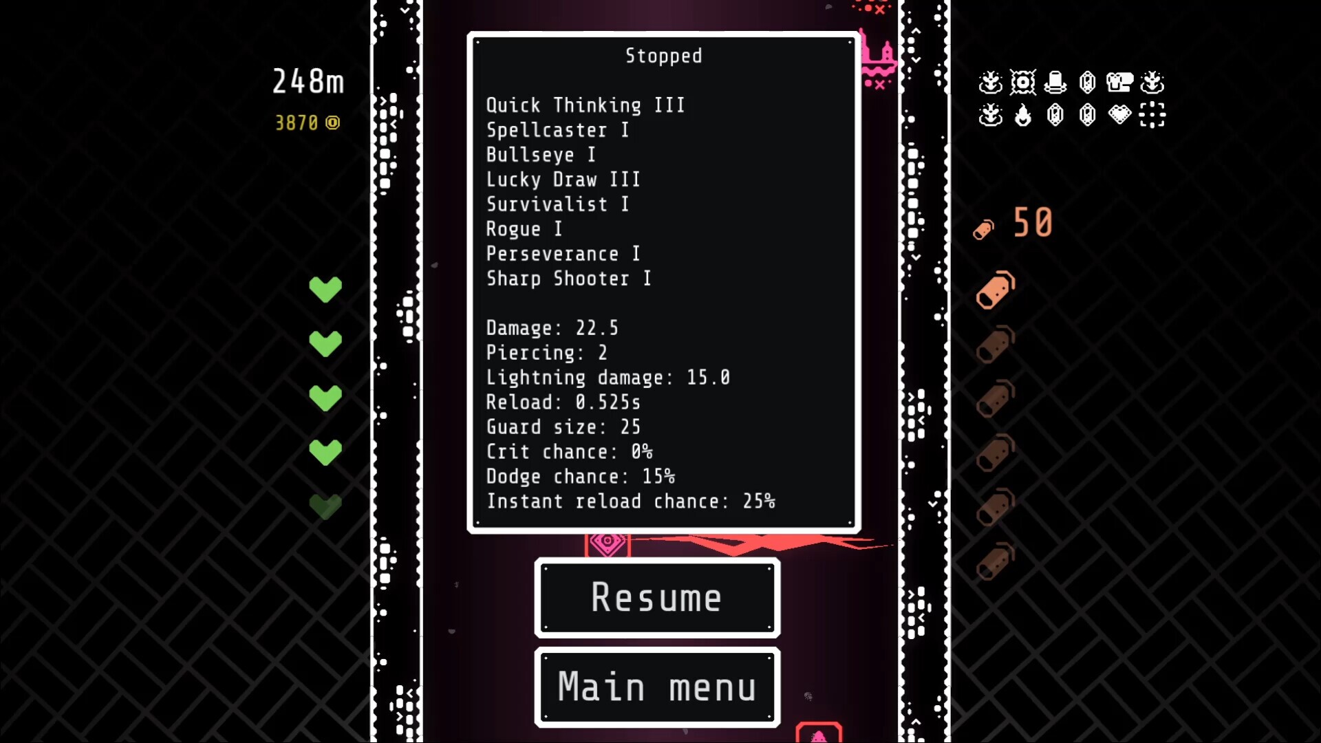 Gun in a Well is an action roguelike where the only way to dodge is to shoot. Jump around using recoil, kill enemies with bullets, destroy them with electricity or burn them to crisp. Manage health and ammo, choose your upgrades, break the game and reach the bottom of the well!Features:💣 Dozens of unique upgrades, each with 3 levels and unique abilities, allow you to create your own play style🔫 Choose your weapon out of a large arsenal each run⚡ Shoot enemies with bullets or lightning, burn them or get rid of them in other ways to reach the bottom of the well📈 Buy passive improvements between runs and beat all the ascension levels!🏆 Approachable (but not easy!) ~10 minute runs