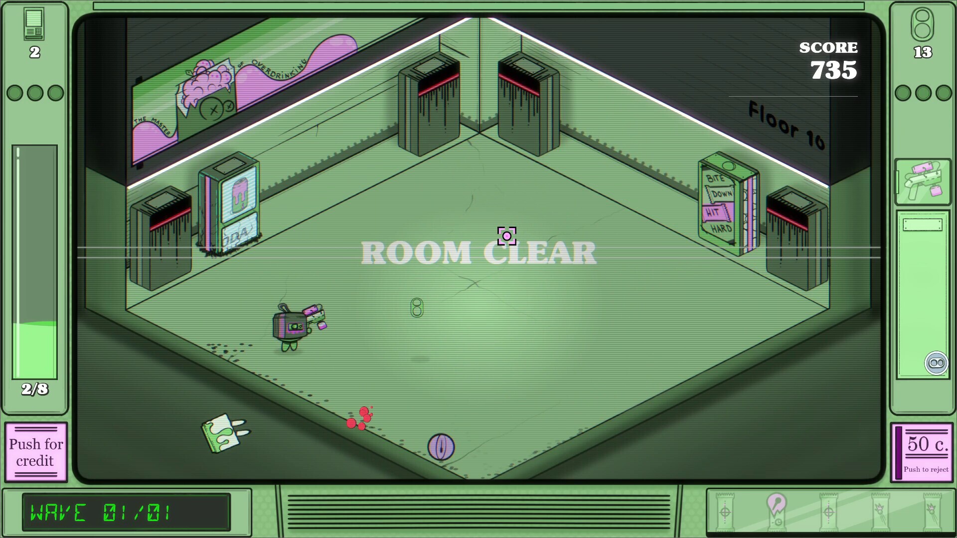 INFOGUNS&SODAS is a fast-paced arcade rogue-action game where explosive sodas and relentless gunfire mix into a high-octane experience!In a world where the Five Primal Sodas, the base ingredients of every drink ever made, have been stolen, only you, the Chosen Can Hero, can bring them back. Get ready to face waves of armed enemies, dynamic environments, and unleash the full power of the legendary Vending Machines!THE 5 PRIMORDIAL DRINKSCollect the Primordial Drinks to unlock permanent effects for future runs.KEY FEATURES• Stylish, high-speed arcade action: Dash, shoot, and chain combos in a fast and fluid combat system.• Rogue-lite mechanics: Start each run from scratch, but as your skills improve, you’ll earn higher scores to unlock better gear and alternate paths.• Super Dash: Dodge enemy fire with high-speed acrobatic moves using the side mouse buttons (or by quickly pressing the left and right mouse buttons in sequence), or by pressing L3 on the gamepad.• Vending Machines as allies: Activate and upgrade VMs to gain rear cover. Some drop powerful gadgets that trigger your Super Shot.• Tons of guns: Discover a wild arsenal of pistols, each with its own unique mechanics and playstyle.• Combo system: Chain kills to boost efficiency and increase your final score.