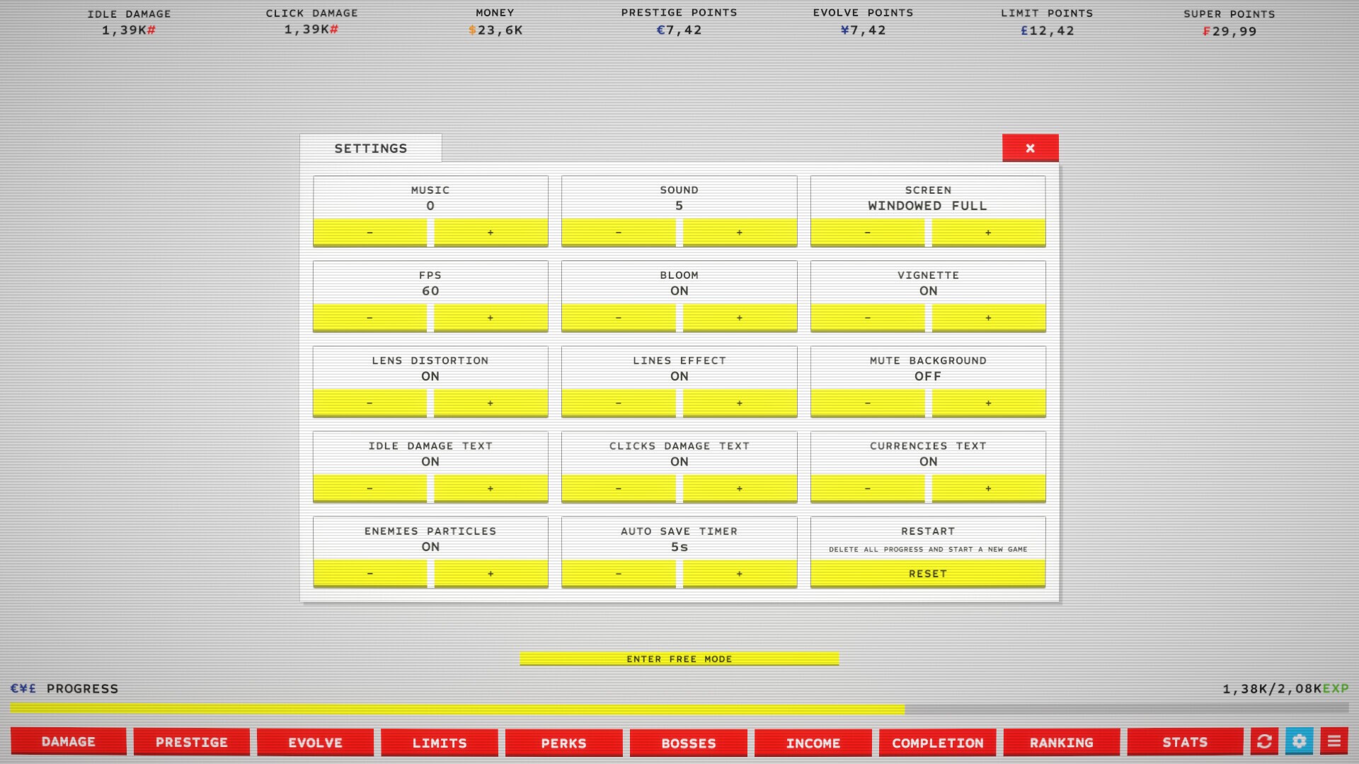 Idle Rect is a complex idle clicker game with almost infinite possibilities. Destroy rectangles to get different currencies and buy unique upgrades. Increase your power with prestige upgrades, evolve generators and break limits! Defeat bosses and unlock various perks. Complete all in-game goals or dominate the ranked system - choose your pastime!Idle and clicker gameplay Five different types of currencies to purchase more than 350 unique upgradesPrestige, evolve and limits breaker upgrades which require a progress resetBosses with increasing difficulty to get extra rewardsPerks upgrades which allow you to boost stats infinitelyExtra income features like exchange system, interest and lottery betsSteam achievements and global ranking systemInfinite gameplay with possibility to reach and complete the final goalsCute and stylish graphics with clean and simple interfaceNo in-app purchases and no early access. Just enjoy the completed game!