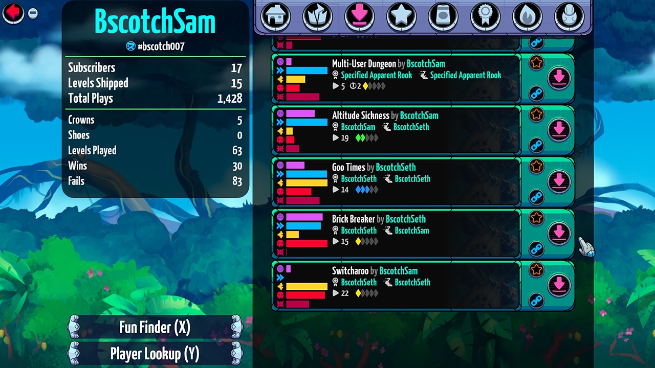+ Build a following, play the world - Publish your Workshop levels to the Levelhub for the world to enjoy, and then fill up your own personalized feed by following creators whose content you love. With robust search and subscription, the Levelhub makes amassing a following and playing quality content from around the world a breeze.