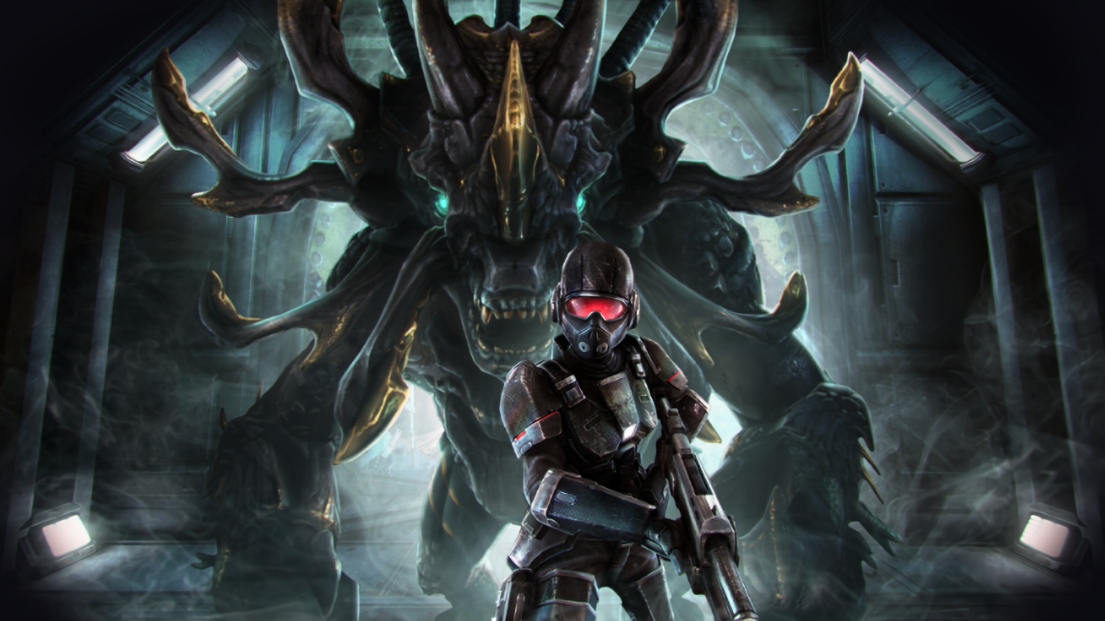 Two teams -- elite marines Frontiersmen and vicious alien Khaara -- compete against each other on robust maps. The number of them is limited only by the play imagination: the game features compelling level editor, scripting and graphical tools to sculpt a unique adventure. FPS mechanic is simple -- you just point and shoot. The beauty of the game mechanics truly shines in intense multiplayer sessions: you have to come up with the cunning strategy to win against players in Khaara team. The goal: clear spreading alien infestation for marines and destroy power nodes for aliens. For a successful completion of all tasks, players need to choose a leader in their midst. The leader rank requires to come up with the cunning strategy as well as with operative control of players.