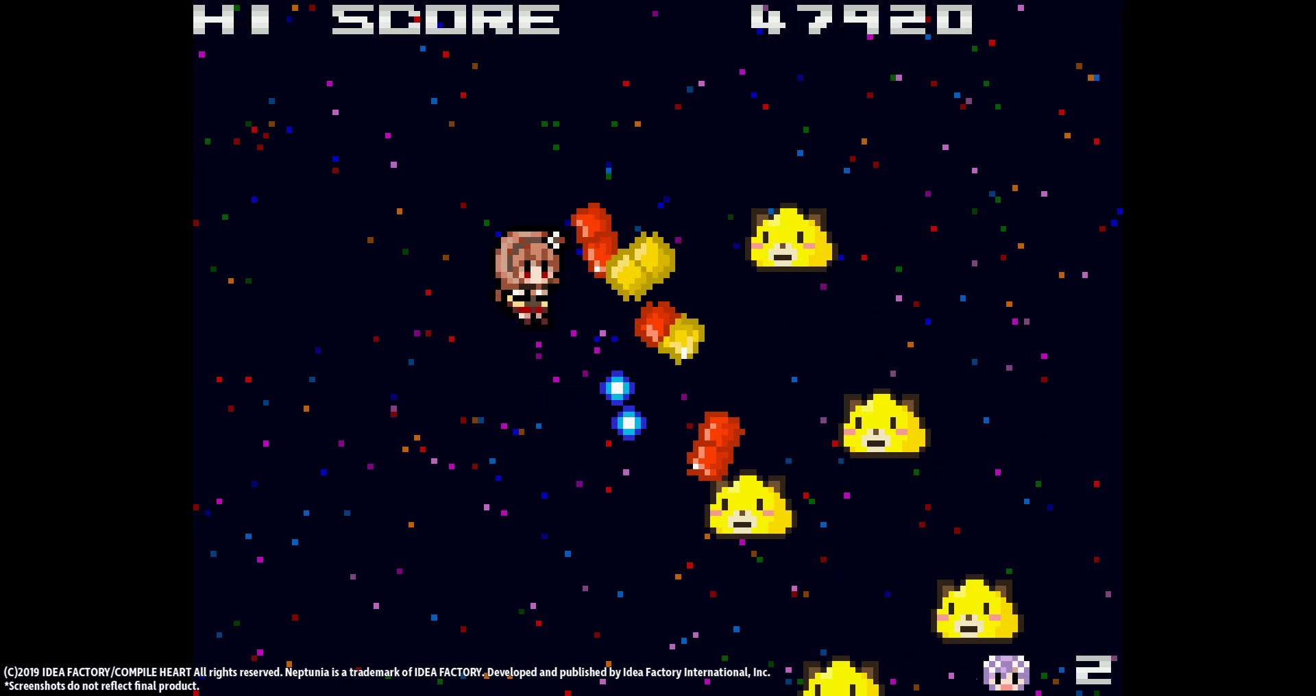 Armed to the teeth, players begin as Neptune in an unworldly 8-bit space dimension ravaged by creatures who burst endless waves of bullets. Shoot, dodge, and defeat the boss in six unique bullet-hell worlds. After defeating each boss, they will join your mission, allowing you to switch characters and utilize their unique shooting abilities. Neptune and her friends must traverse through this shmup space dimension and defeat the last boss once and for all!Key Features