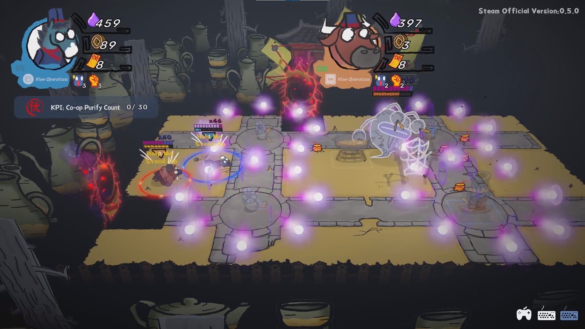 Core GameplayIn "Ox & Horse Work in Hell" players team up with their friends to take on the roles of Ox-Head and Horse-Face, the guardians of the underworld. Your daily work involves battling evil spirits, punishing them, and collecting Sin Points they drop.There are many ways to punish these evil spirits:Beat them down directly with your fists.Pick up items and smash them.Tie up fallen ghosts on torture devices and vigorously torment them.Utilize contraptions to create an assembly line of punishment.Incidental Encounters at WorkYour work in Hell will also involve interacting with various colleagues and superiors, leading to numerous interesting story snippets.Interesting Work Nodes:Take a break at Meng Po's shop, have some soup, and buy items and equipment.Report repairs or purchase new torture devices from the Judge.Open treasure chests to claim free rewards.Encounter unexpected events, such as being asked by a superior to run errands (maybe there's a reward?).Experience some adult encounters with female ghosts or colleagues.Have a brawl with colleagues to see who will be the outstanding employee of the day.Key FeaturesCooperative and competitive two-player gameplay.A variety of punishment torture devices.A large number of contraptions.Numerous evil spirits descending into Hell.