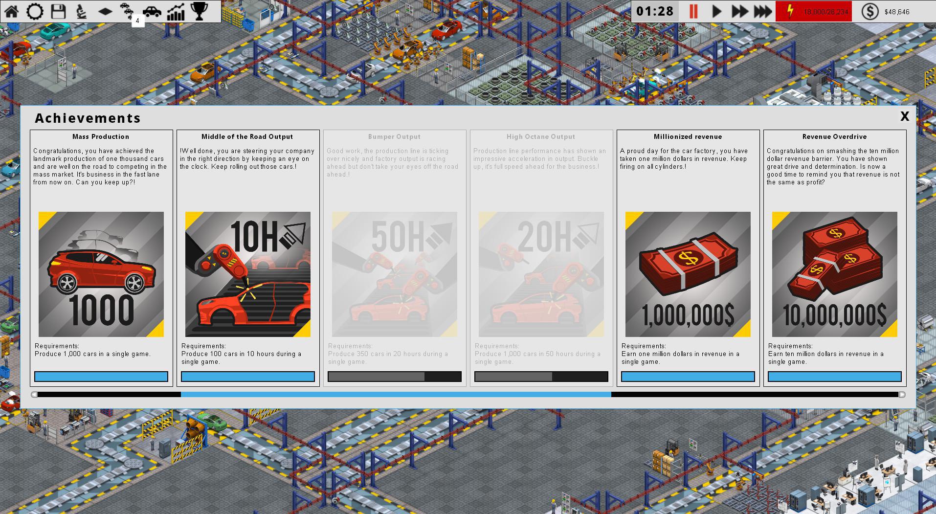 Production line is the new car factory management/simulation/tycoon game that pushes your organisational and entrepreneurship skills to the limit. Can you build the ultimate optimised, free-flowing car production line whilst beating the competition and still turn a profit?