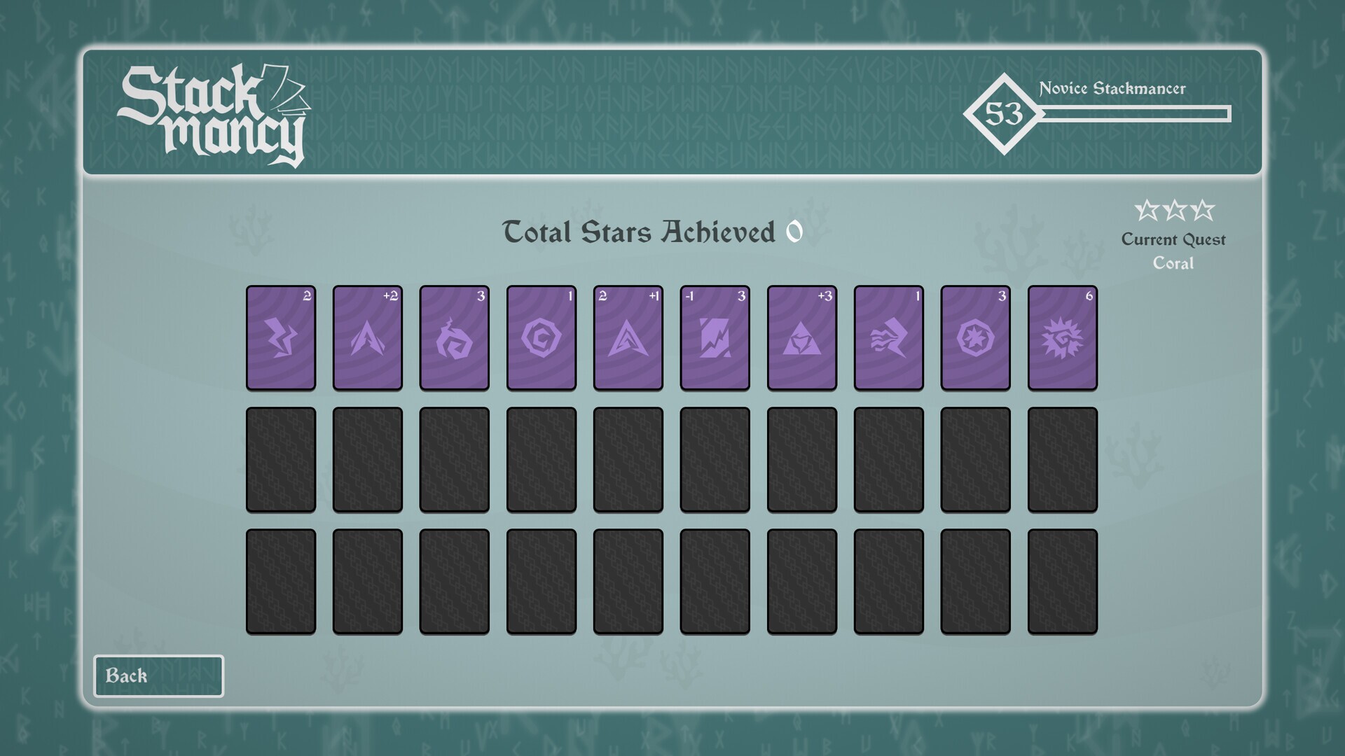 Stackmancy is a fast-paced roguelite card game where you pop spell packs, stack powerful combos, and eliminate enemies on your journey to become the Grand Stackmancer.Easy to pick up & hard to put down. Perfect for short 10-minute bursts of "just one more run" energy.Pop PacksStackmancy is a game focused on fast decision making where you have to quickly decide which spells to keep and which to sell to afford additional packs.Aquire ArcanesAs you defeat enemies throughout your quest, you will be able to choose from a selection of increasingly powerful Arcane spells.These Arcanes can be used repeatedly, combine with each other for powerful effects & are key to your success, so choose carefully.Stack SpellsThe ultimate goal of each quest is to defeat all the enemies as quickly as you can with rewards for the fastest times.If you can defeat all the enemies, you'll gain a new title, unlock the next quest and if you beat it fast enough, you'll be rewarded with powerful Arcane spells for future quests.Power PassivesRegardless of if you win or lose, you'll gain experience, where each level grants a skill point which can be used to improve passive abilities and make you a more effective Stackmancer.