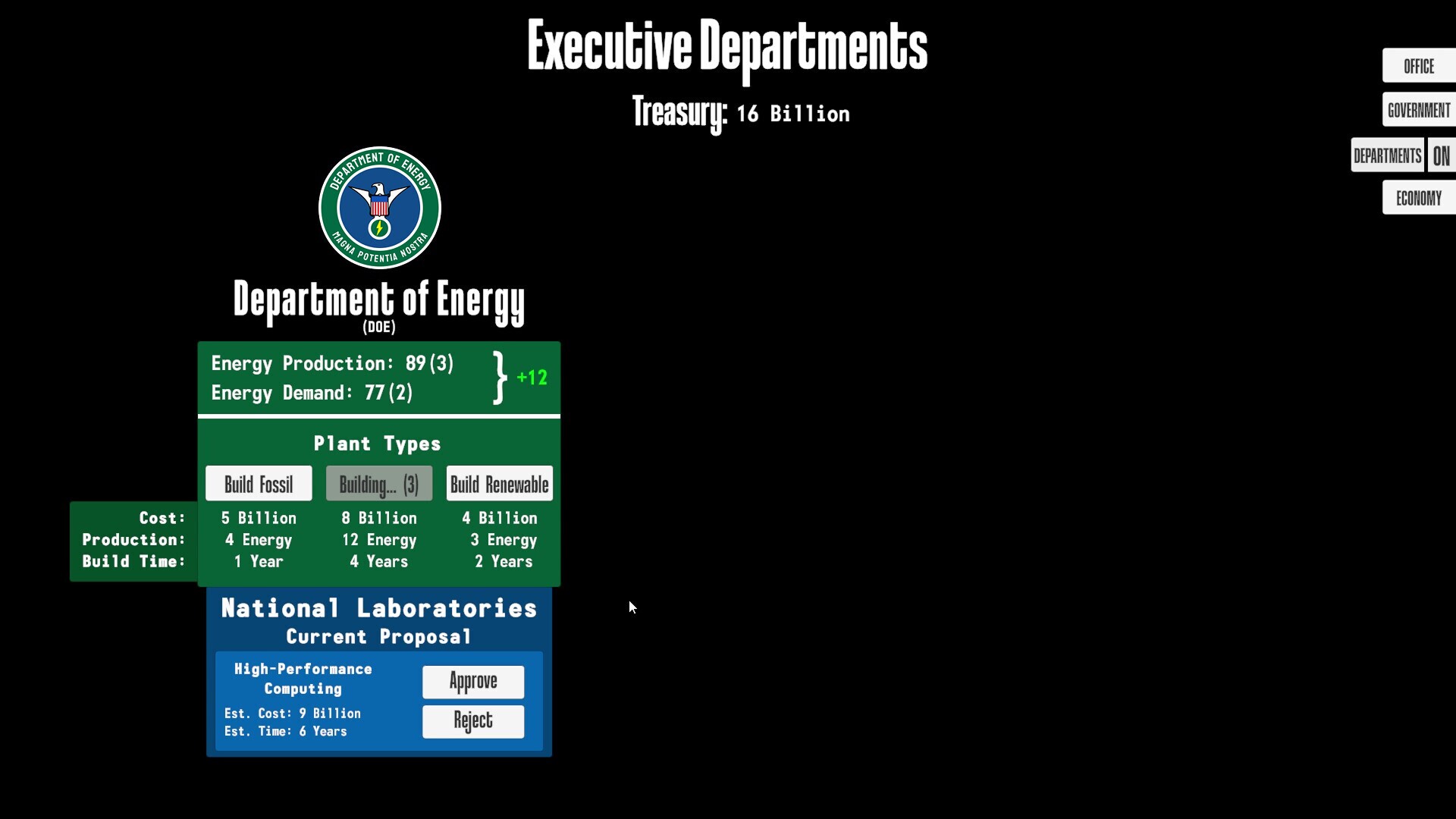 Strategic Stalemate is a 2D turn based geopolitical and strategic video game with a dynamic soundtrack and emergent gameplay set in an alternate beginning of the 1960's. Take charge of the US as both president and micromanager, managing everything from pressing international events, internal politics, managing the country's economy and energy demands. All while threading the needle between success, reelection and an all out nuclear war.KEY FEATURESThe core part of the game will have you set in the Oval Office as acting president. Making individual choices for as many as 32 unique events based on your current circumstances. Events affect the five key elements, World Tension, Soviet Aggression, Military Strength, Popularity and Political Power which you will need to balance. To help with the delicate balance (and avoid nuclear annihilation), you will have access to the office's red phone from which you can make key calls to different officials.Presidents come and go, only being allowed to serve two terms and as such, under the course of a playthrough, several different presidents will be elected. All with unique strengths and weaknesses which you will need to take into account under their presidential terms.[MORE TO COME]To better organise and manage the country, you will need to establish and fund executive departments such as the Department of Energy. From the Department of Energy, you will be able to see and manage the country's energy demand, production and the funding of new power plants. Furthermore, you can also establish R&D Labs, which with the necessary funding and time, will provide certain bonuses to the nation.[MORE TO COME]Each turn, you will be given a yearly income which you can either spend in the executive departments, or invest into the national economy. If the economy grows, your investments will increase in value and vice versa. The economy is unpredictable and thus an investment risk. However, you are not the only actor in the economy. As the world's largest industrial power, American companies have rapidly expanded and amassed considerable influence. In response, labor unions have emerged to protect worker's rights. Both sides vie for control each turn and it is up to you to support a side or choose to balance the power.A lot of different factors such as events, elected president, energy demand and to a major degree, the economy, have an RNG aspect to them, keeping each playthrough unique and unpredictable. Combined with 3 endings, it gives the game a certain degree of replayability.Composed by my good friend and aspiring indie artist, Theodor, the game includes a fully dynamic soundtrack in the style of dystopian ambient with spiraling high tones and a subtle undercurrent of tension. Meaning as World Tension increases or decreases, the soundtrack will respond in tune, providing a level of immersion.