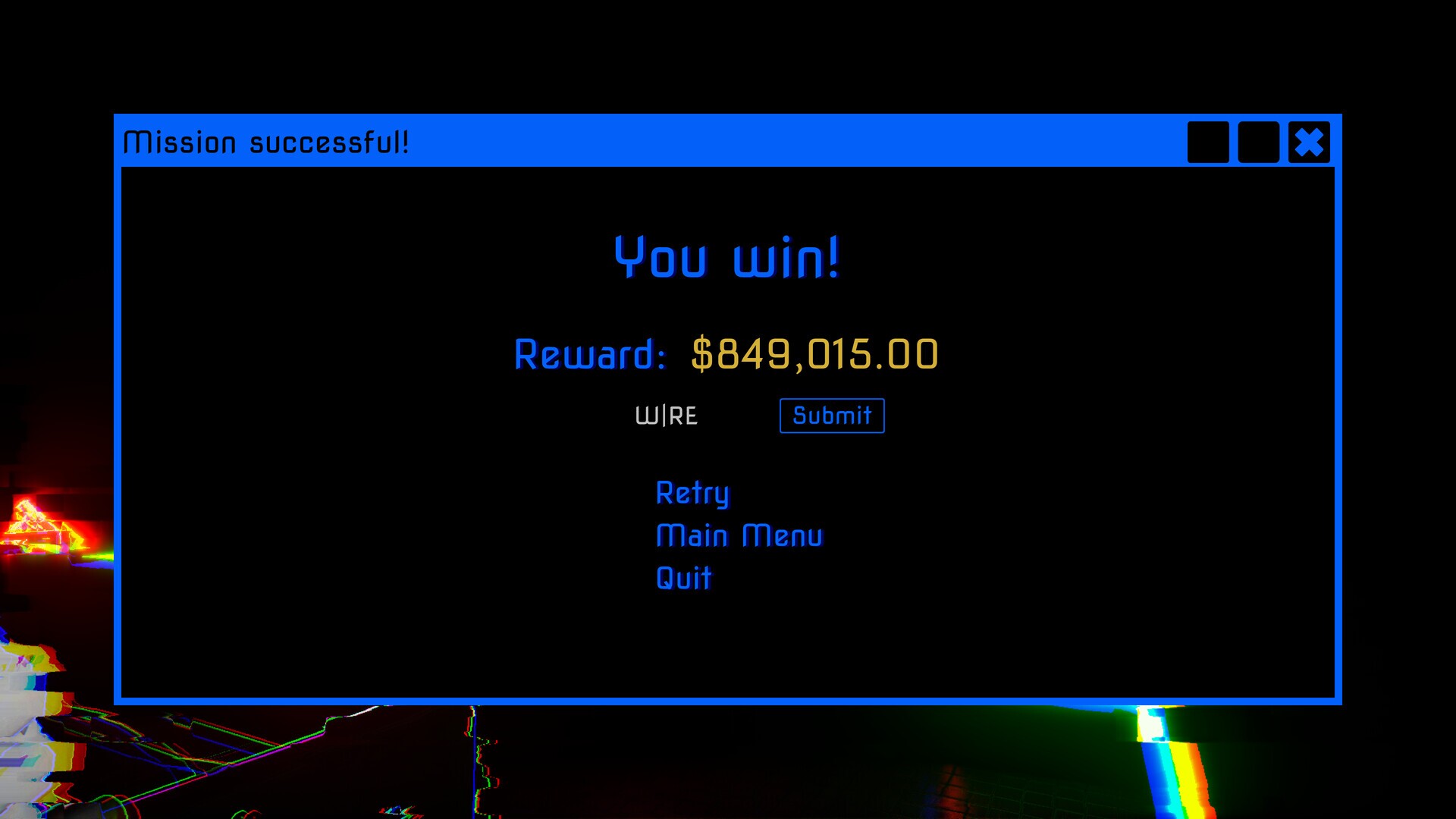 SummaryW|RE is a short fast-paced, first-person shooter where you play as a veteran hitman—tired of routine contracts—who takes a mind-altering drug that radically changes how he perceives the world. In this altered state, sound becomes light: every gunshot, footstep, or musical beat sends out colorful waves that briefly illuminate the environment in glowing outlines.Your mission is simple: reach the target location and eliminate your enemies as fast and precisely as possible. The faster you are, the more money you earn. If you're not satisfied with your performance, try again—perfect your rhythm, and climb the highscore ladder.GoalThe goal is to clear all rooms in a level as quickly and efficiently as possible while maximizing your score. Your final score is affected by several factors, including clear time, headshot count, hits and accuracy. The better you perform, the more your employer is willing to pay - and the higher you climb on the leaderboard.SettingThe world of W|RE is inspired by the cyberpunk aesthetic: dark, industrial environments lit by vibrant color and driven by pulsing music. A short comic-style cutscene introduces each run, explaining your mission and setting the tone. Speakers placed throughout the world reinforce the rhythm, making every level feel like a playable beat-driven hallucination where your perception is as much a weapon as your gun.