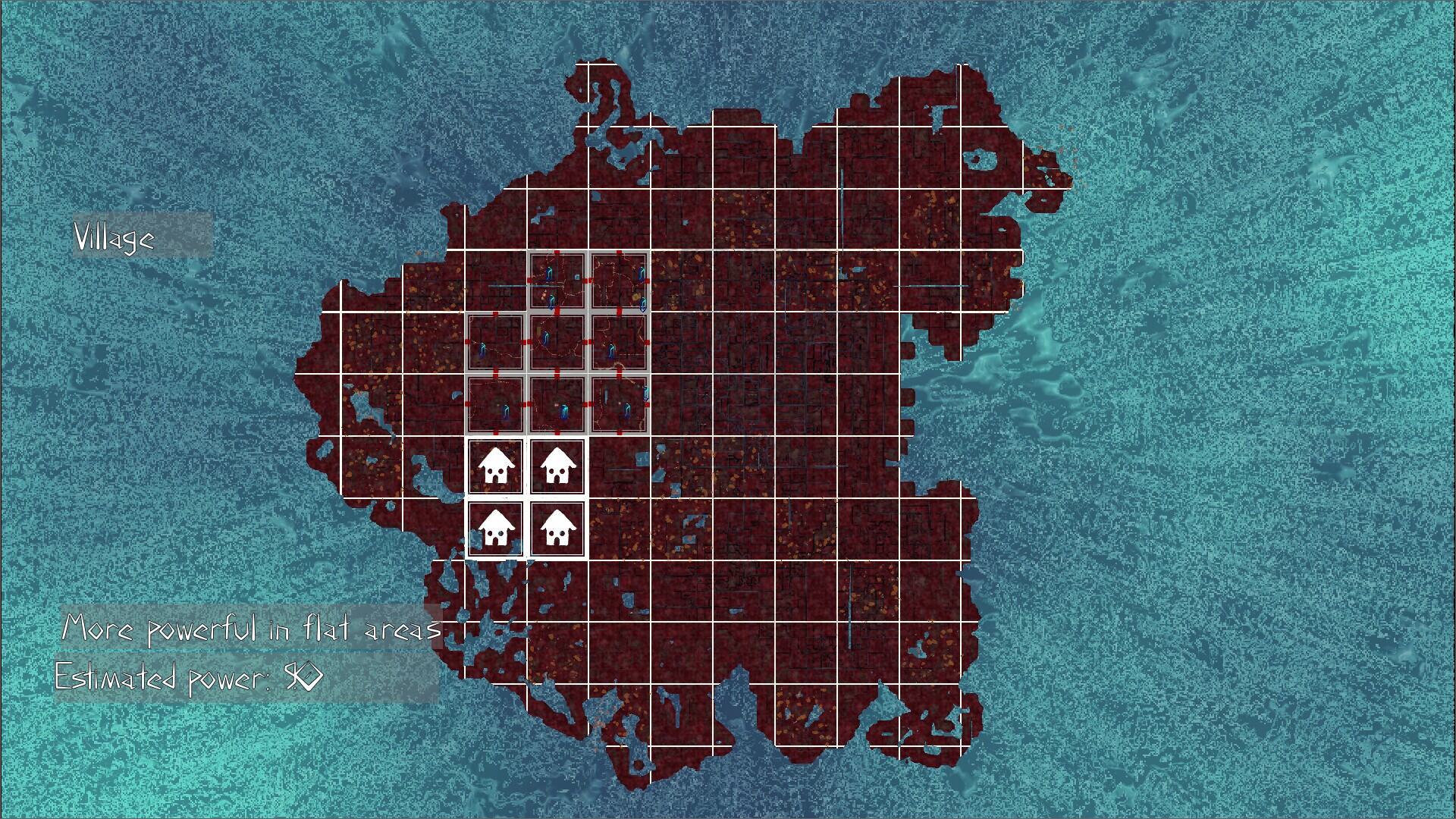Buildings have different requirements for optimal power level; a higher power level spawns more humans, but completed regions with higher power will also produce more upgrades. Upgrades are claimed by placing them into completed regions.