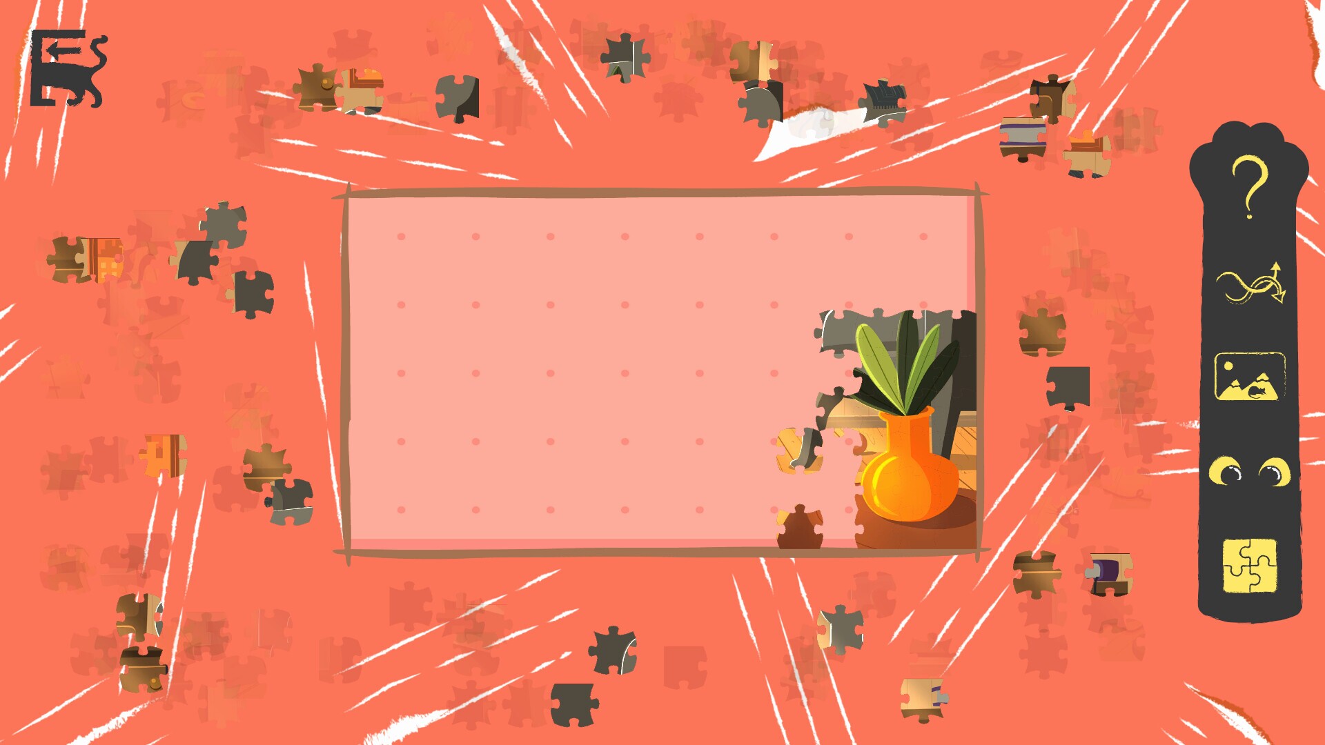 "Cali and The Secrets of The New Home" is an 8-scene jigsaw puzzle game where players discover the story of Cali, a black kitten on her adoption adventure. Follow her discovery-filled story through beautiful images from Cali's perspective, showing the exploratory, imaginative and curious nature of cats. Game Features:🧩 3 difficulty levels: Easy (144 pieces), Medium (350 pieces), Hard (777 pieces).🎵 Original soundtrack: Relaxing and immersive.🔍 Helpful tools: Zoom, highlight pieces (edges/specific quadrants), shuffle pieces and image preview.📖 Engaging story: Each completed scene reveals a chapter of Cali's journey! This is a game for cat lovers! But we also aim to raise awareness about the importance of adopting black cats, who are often overlooked in shelters due to spiritual prejudices or being seen as too "common". Black cats are just as beautiful and full of love to give as any other cat!