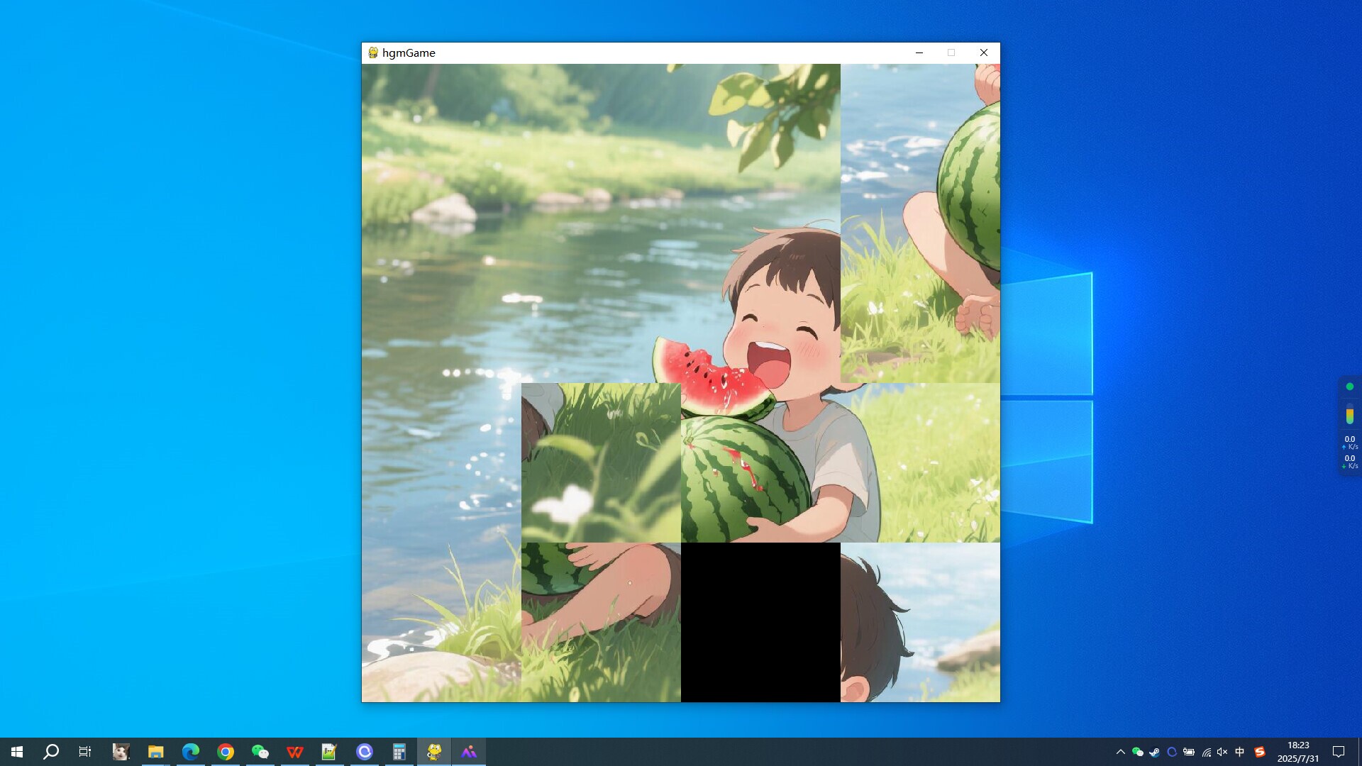 This is a casual and puzzle puzzle game where the complete image is randomly shuffled into 4 * 4 small images each time. The position of each small image is random, and you need to assemble them into a complete image (in order to make the image move, the final puzzle will be 1/16 smaller).Suitable for: Those who enjoy puzzles or have free time to exercise their brainpower can repeat the challenge.Features included:Game interface composition: one image divided into 16 pieces, The position of each pieces is randomGame steps: Click the left mouse button on the image around the black square, and the image and black square will switch positions. The goal is to assemble all the small images into a complete image. The complete image is as follows:Here is the process and screenshot of one of the games:At first, it may be very chaotic:Then gradually place the image in the corresponding position:The image gradually becomes complete:Come and give it a try
