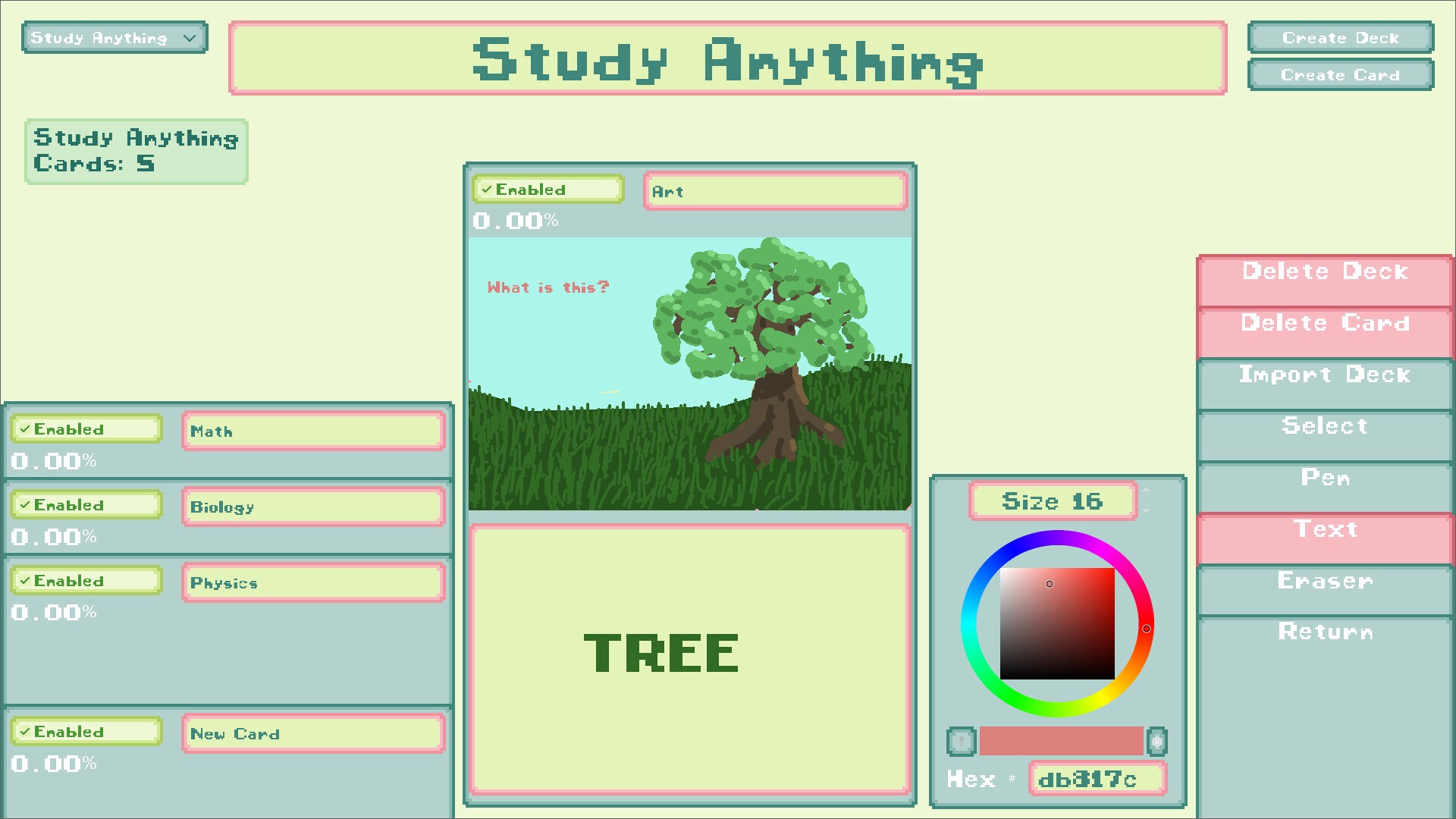 Create Your Own DecksBuild your own personalized study decks with ease. Whether you prefer typing out notes, sketching diagrams, or uploading images, the choice is yours. Tailor your learning experience to match your style and make studying more effective and engaging.Study with Multiple ModesDiscover a variety of study modes designed to support different approaches to learning. From methods that encourage consistency to those that focus on quick challenges, there’s something for everyone. Stay motivated with tools that adapt to your needs and preferences.Earn FlashesEvery card you study earns you "flashes," the in-game currency. Use them to unlock cosmetics, daily challenges, or activate the pomodoro timer for focused study sessions. Unlock UpgradesLevel up your study game with upgrades that enhance your "flashes" and XP gains. These boosts keep you engaged and motivated, making it easier to hit your learning milestones. Customize Your CardsMake your cards truly your own by spending "flashes" on cosmetic upgrades. Add flair and personality to your study decks, turning every session into a visually enjoyable experience.Make Studying Enjoyable This isn’t just studying--it’s an adventure. With creative tools, engaging modes, and plenty of customization options, this game transforms learning into something you’ll actually look forward to. Why just study when you can play and learn at the same time?