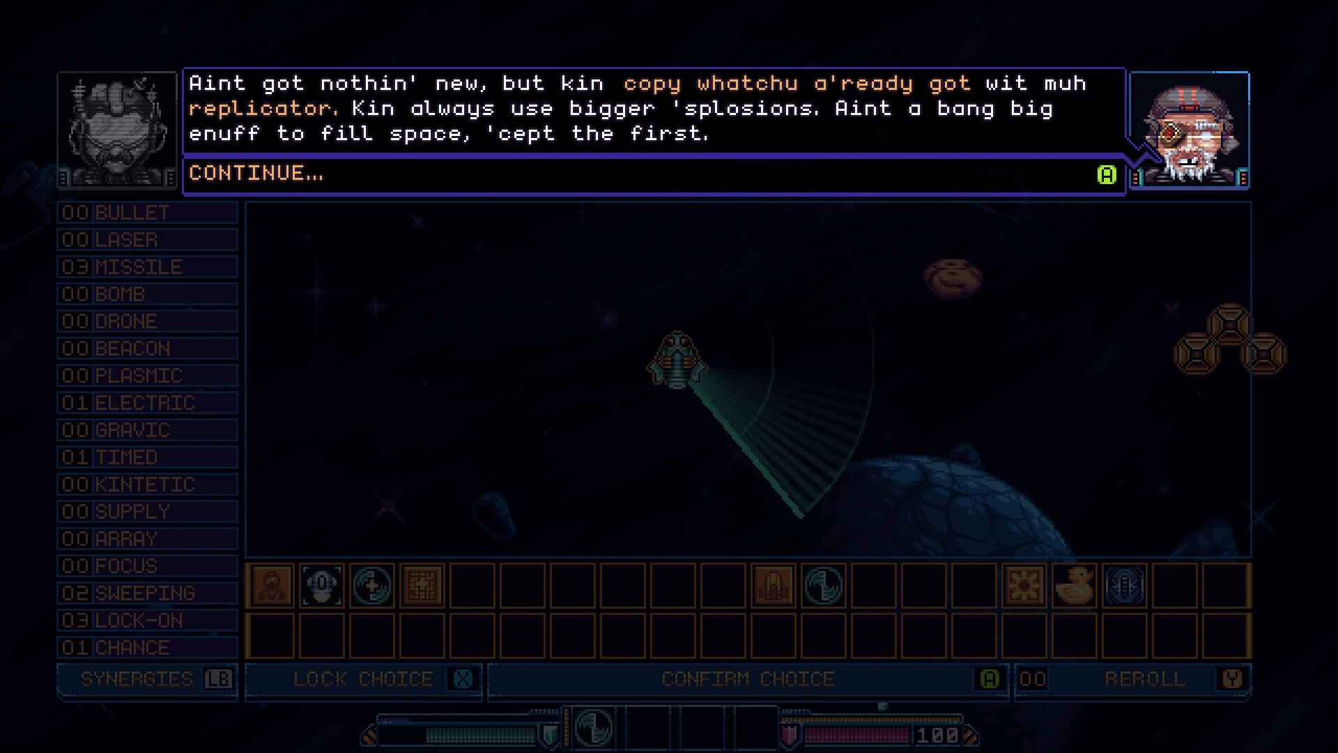 Refined Control: Every ship comes equipped with an active dodge ability for getting out of the most dangerous situations. Use the new "Air Brake" to make micro-adjustments to positioning when the bullets start flying. And 360-degree analog movement brings Gunlocked out of the retro era and firmly into the present.Branching Paths: Periodically choose a warp gate and seamlessly jump to your chosen destination without ever pausing the gameplay. Different zones offer unique battles and rewards. Every run offers new choices!Modular Difficulty: Activate any number of difficulty modifiers until you find the sweet spot for your mood.Glorious Pixel Art Revolution: Huge, full color sprites with detailed animations make every bullet, bomb, and laser explode with style. Gunlocked 2 is a massive leap forward in pixel art spectacle.