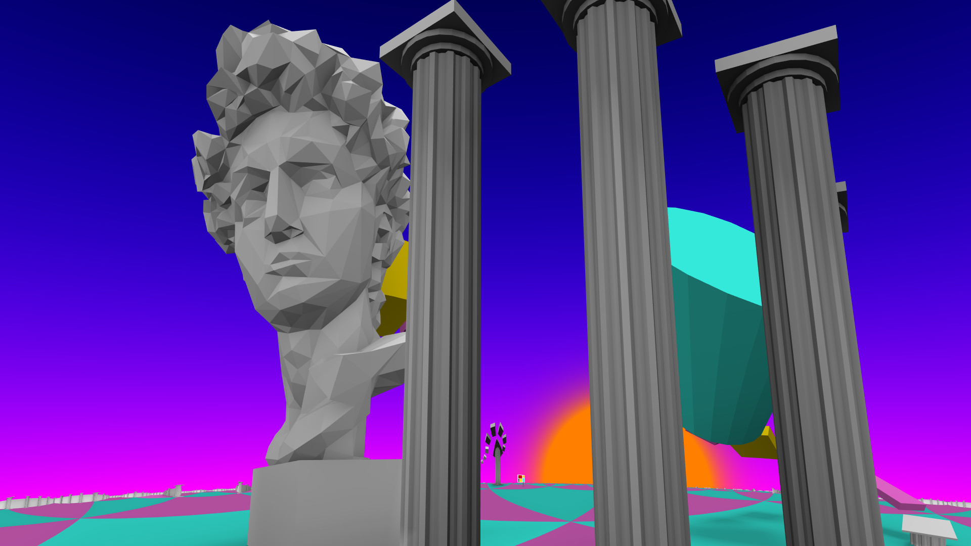 Hyperbolic space allows exponentially more volume to fit in the same 'space' than you'd normally expect. This allows you to explore enormous areas while taking very little time to walk anywhere. You'll find that building a mental map of your surroundings becomes impossible. Lines can no longer be parallel. Traversing the map can result in unexpected rotations. And many more strange consequences that will make you question reality. You'll also explore spherical space, which has the opposite outcomes. For example, a reverse-perspective: Objects appear larger the farther away they are.