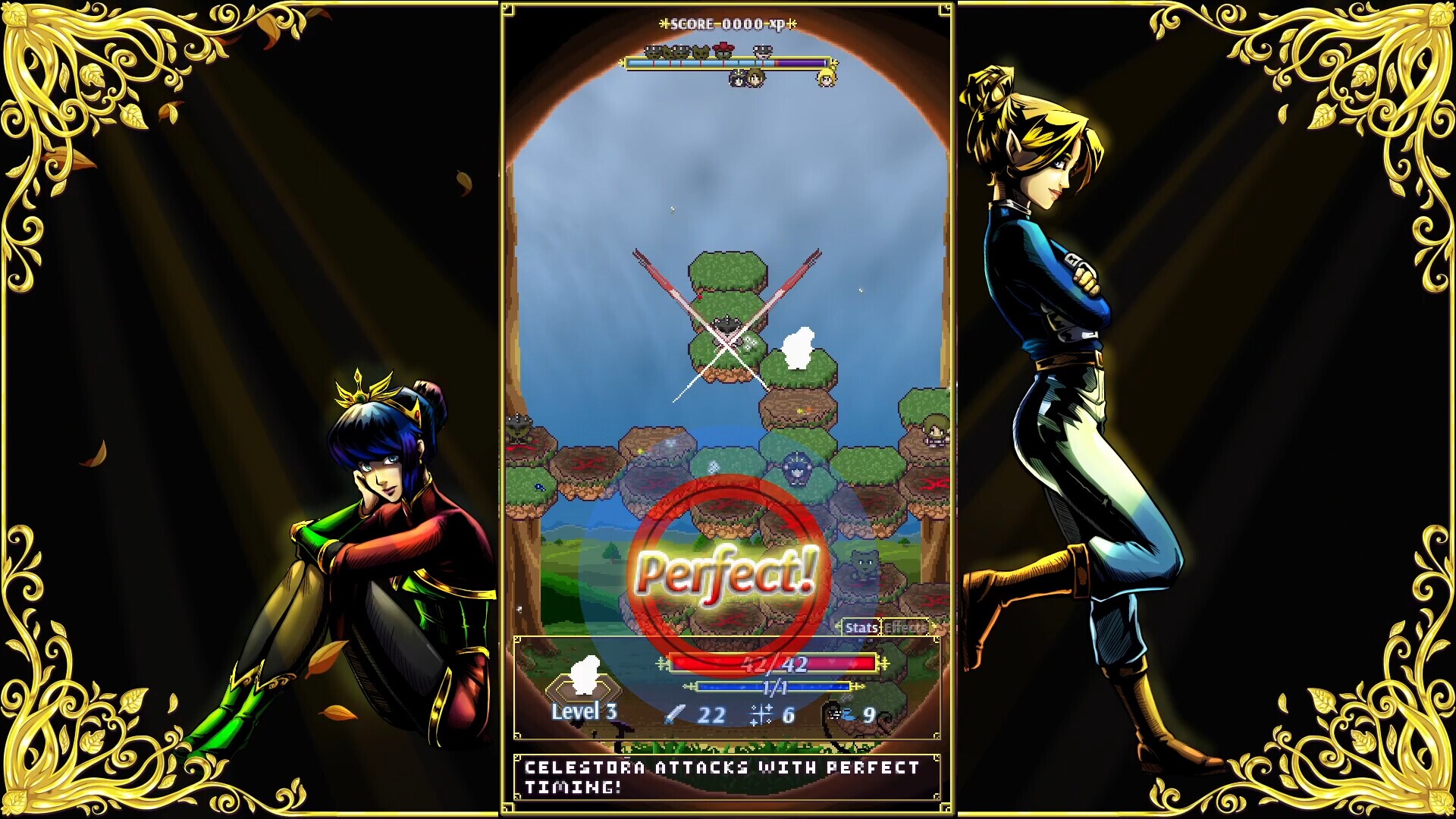 Finally, a tactical RPG that has NO RNG to Hit, Miss, or Crit!When you attack, use an item, cast a spell, or defend yourself, you'll face a Ring Trial. Click when the indicator is in the Blue Zone to succeed. Click when the indicator is in the Red Zone for a critical success! But, of course, try not to miss...A living battlefield to change as you please!Terrain has a massive impact on battles. Fortunately, you can change it freely with your magic! Just beware... your foes can do the same!A story that changes based on how you fight!Actions speak louder than words. There's no dialogue trees of options for you here... how your characters interact depends on how you fight. Your decisions (and your skill) will determine your party's fate—in more ways than one! The party that never stops!When the new king sent princess Sahana to the far-flung hinterlands of the kingdom via a "political marriage," she didn't expect a warm welcome. And that's great, because she didn't get one.Her reluctant husband, Kadi, treats her well but mostly avoids her. Vexingly, he does not seem to be avoiding a beautiful mercenary named Celestora—who says she wants Kadi dead, but spends all her time with him anyway. Hana's "exile" isn't the worst, but she has had about enough of this little situation... Join this band of misfits as they venture to quell the monsters that trouble the province...Super IndieRadix Chronicle is brought to you by the 2 person studio, Luna Flora. Ray handles the code, and Marcus handles the other stuff!