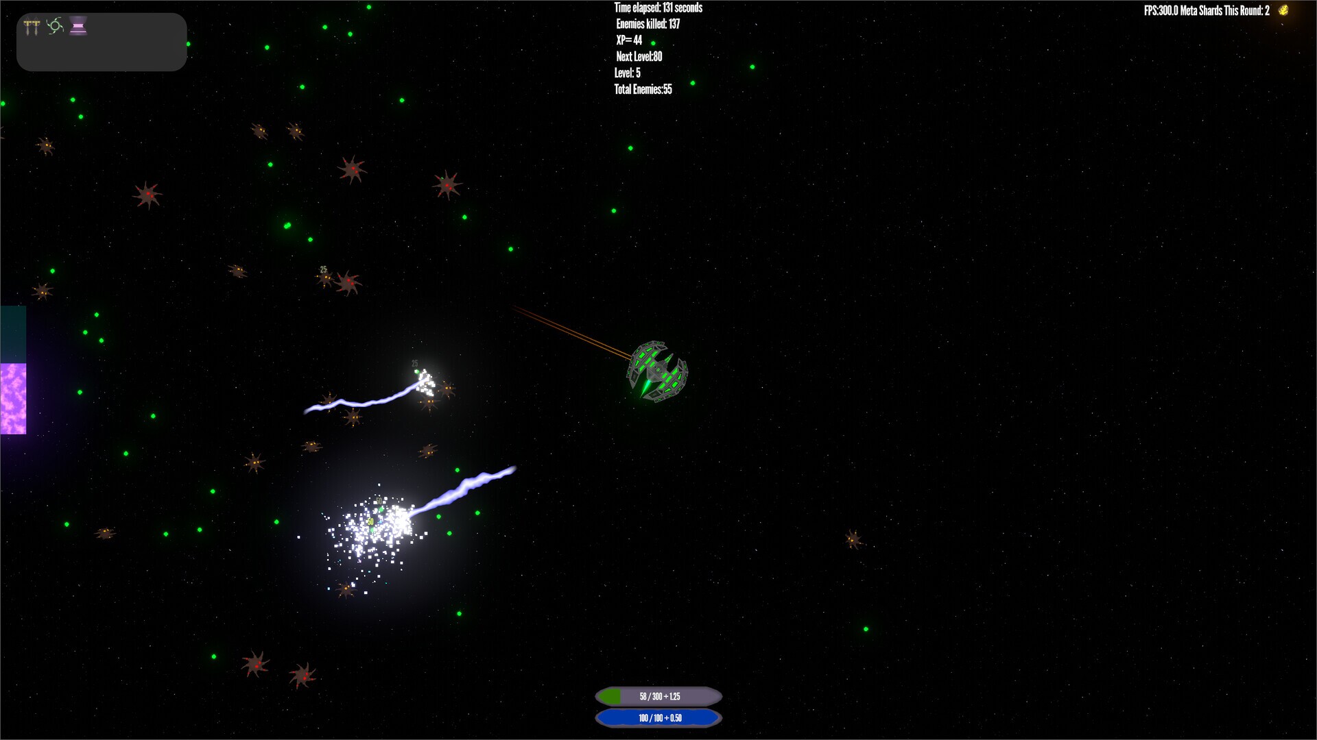 While traveling through hyperspace, your ship's drive field suddenly fails. Moments later, a relentless alien force attacks, determined to ensure your journey ends here. Now, Stranded In Starlight, survival is your only option.FeaturesFast gameplay sessions (under 30 minutes)Many different weapons and utilitiesBossesSurvive hordes of enemies that grow larger and stronger as time passesGain experience and upgrade your shipBetween runs you can permanently upgrade your ship and unlock new abilities