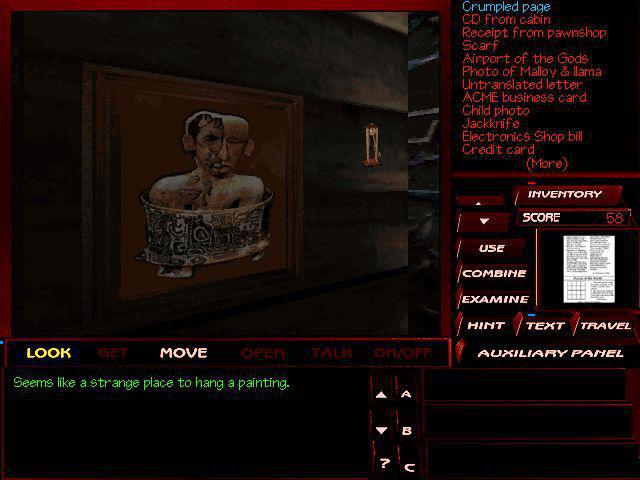 Unrestricted movement. The unique "Virtual World" engine allows you to slip under desks, rifle through drawers, and see the flies tanning in the light fixtures. Without the restrictions of rendered paths, you can explore Tex's three-dimensional world with full freedom of movement.