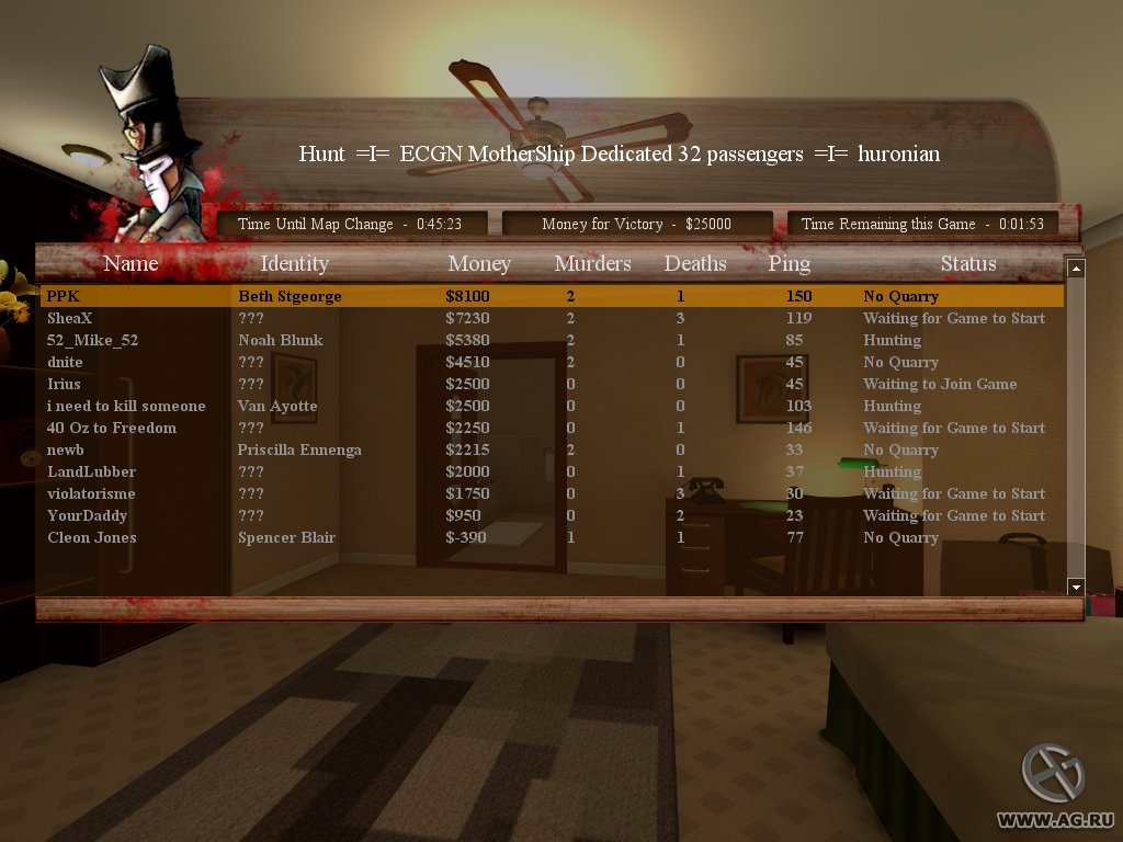 While working out the planned murder, the players have to eat, sleep, keep their hygiene, talk to other passengers, and keep their character entertained. First, find a weapon. The game features a wide variety of both firearms and melee weapons. The players can also use the environment as their weapon. Second, find your target. The intel about the person you're about to kill is updated every 30 seconds. At first, you'll only know the name of your victim. Third, eliminate your target. And don't get caught. You can change your outfit, lock yourself in a bulletproof room or just blend in with the crowd.