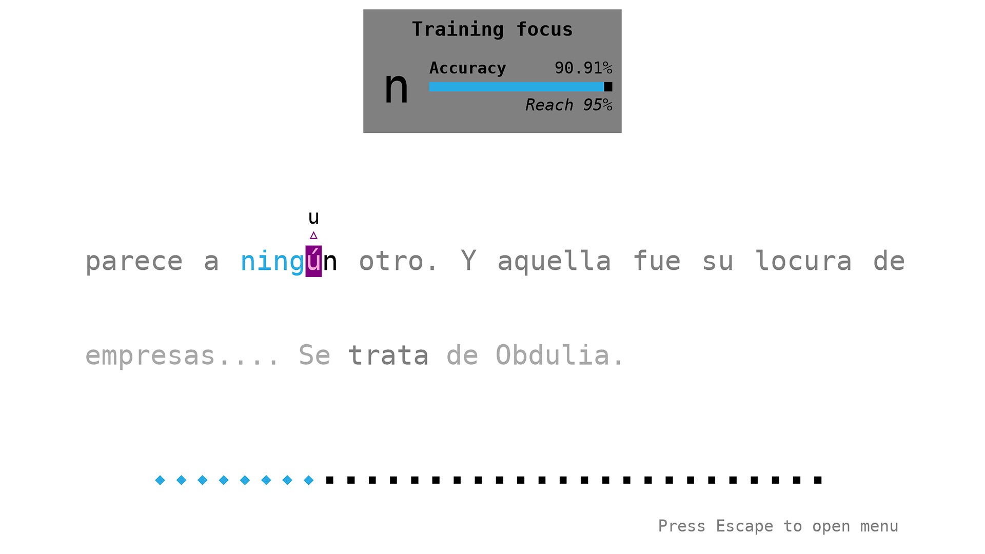 Typingvania is a typing trainer with a focus on variety and accuracy where you type words from real books tailored to your current skill.Key featuresType words from a real book with all the flowery and evocative language, not the same 1,000 most common words or random quotes, including numbers and punctuation. Included are books in English, French, German, Italian, Spanish, Japanese, Russian and Simplified Chinese.Typingvania tracks your every keystroke and schedules words that will be the most effective to get you typing evenly and accurately across the whole keyboard, starting with the most frequent letters.There are no timers or mechanics that force you to type as fast as you can. Speed comes with accuracy and the game will gently push you to be highly accurate.