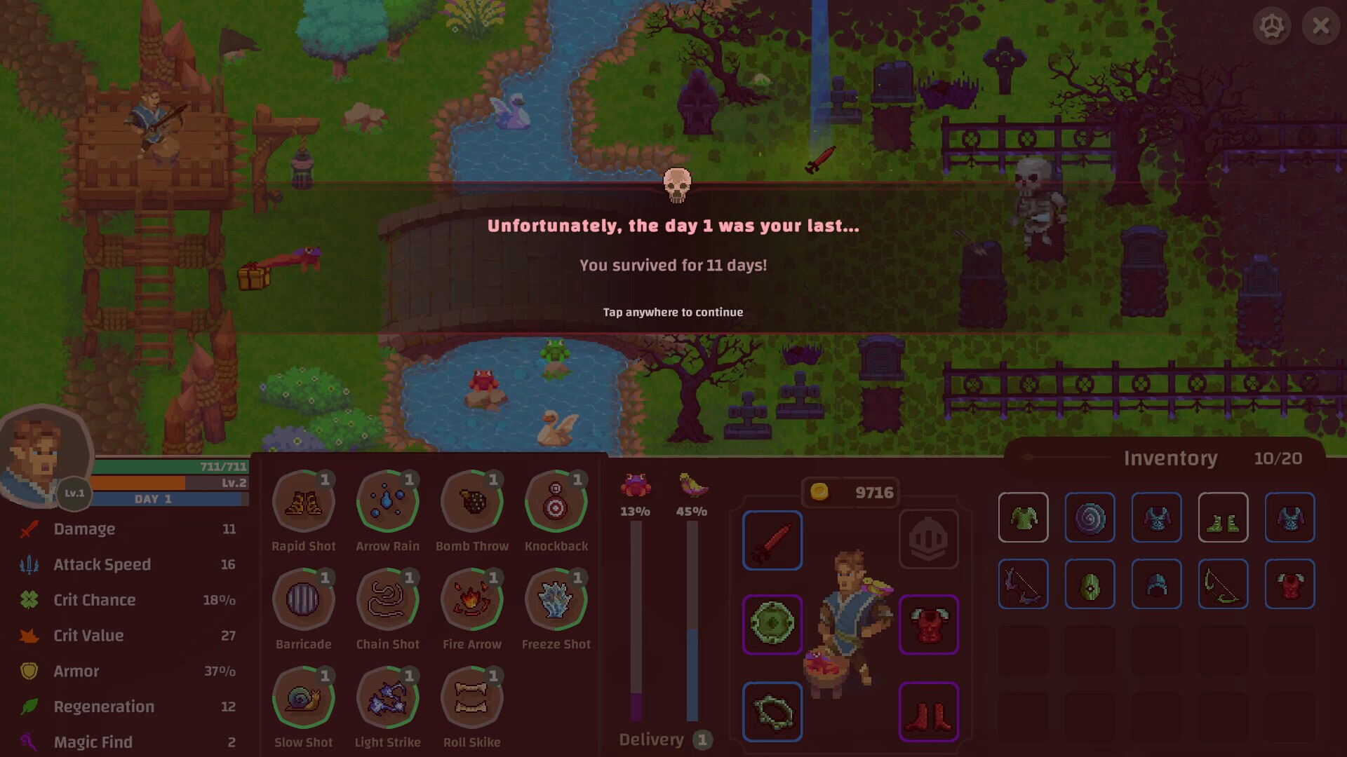 Village Defenders – A strategic 2D roguelike game. You must protect your peaceful village from hordes of zombies and skeletons! Act smart, unlock unique abilities, and upgrade your equipment to fend off waves of undead.Plan your defences wisely—each level introduces new challenges and tougher foes. Will you hold the line, or will your village fall? Rally your forces, master the art of defence, and become the hero your people need!🔹 Learn & Upgrade – Enhance your defender with unique abilities.🔹 Diverse Enemies – Face waves of foes, each with different strengths and weaknesses.🔹 Strategic Depth – Try different equipment to adapt your tactics.🔹 Epic Boss Battles – Test your defences against a massive, fearsome boss.🔹 Endless Mode – How long can you survive against infinite waves?Defend your home—Village Defenders awaits your command! 🏡⚔️🛡